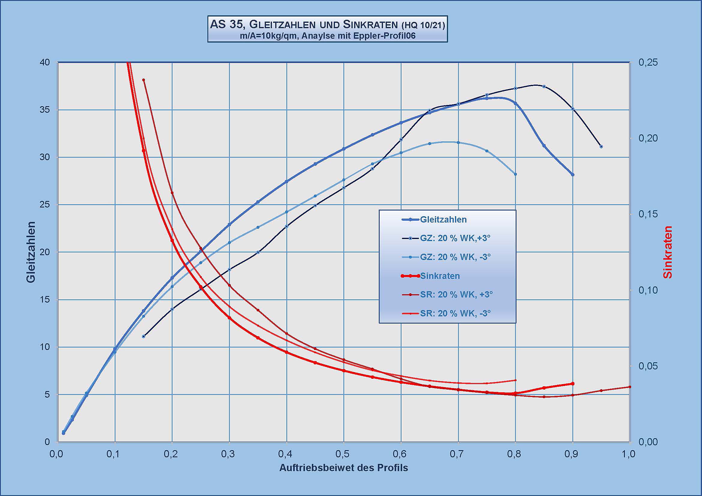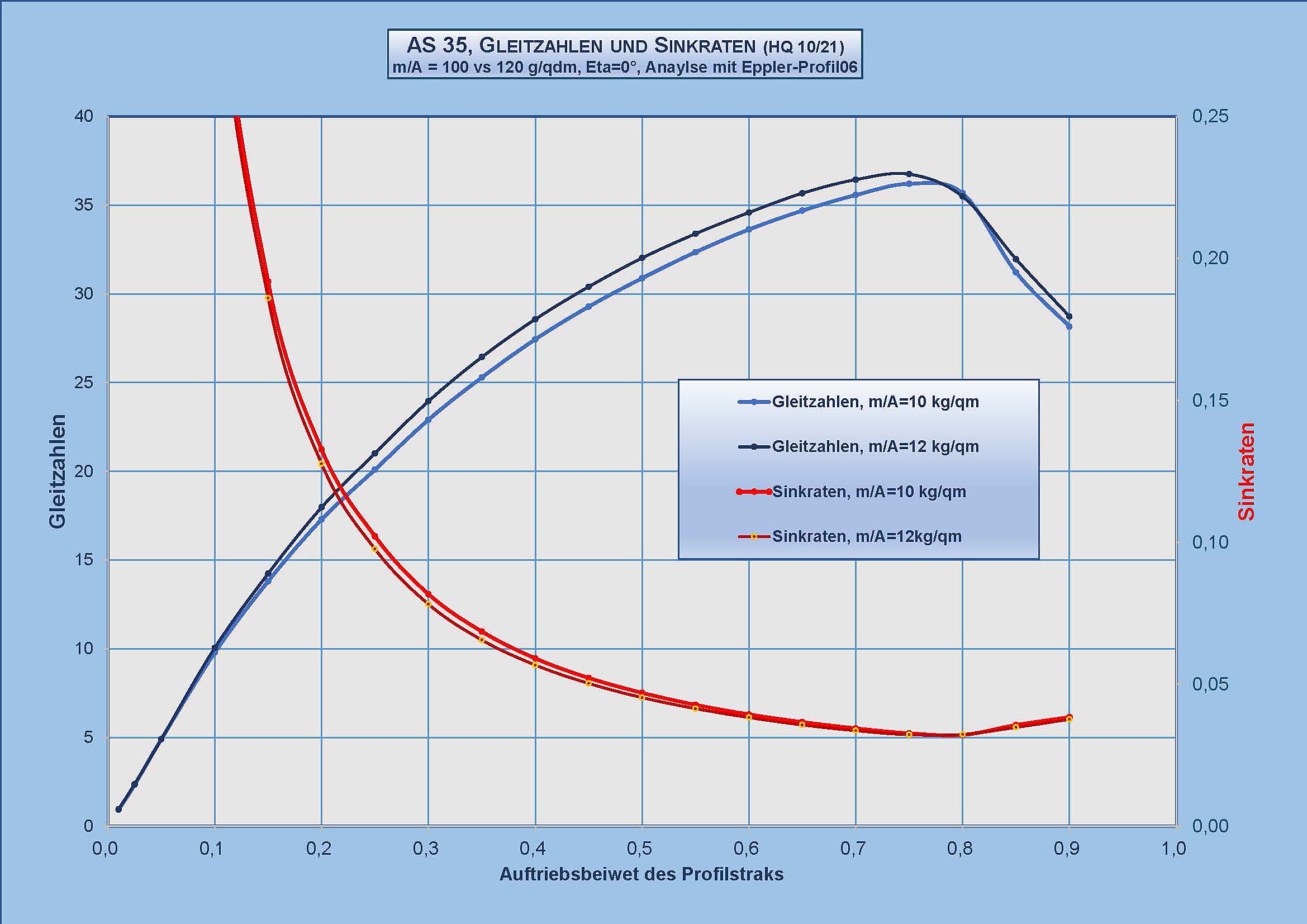 Auftriebseffizienz hat die Tragfläche des "AS 35 -RCFA"-Modells bei