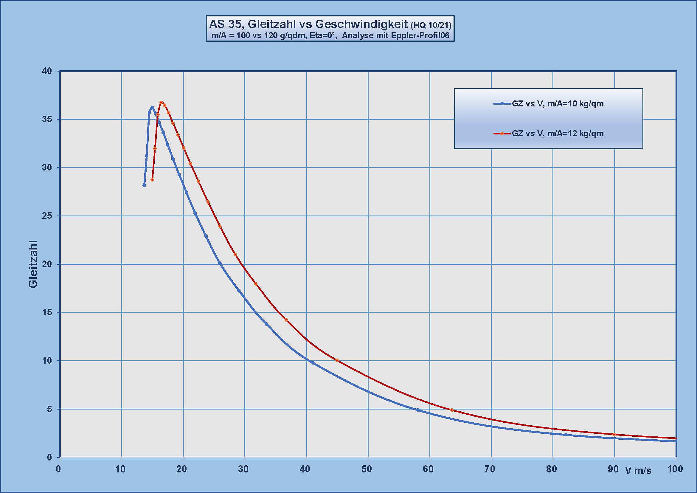 gleichbleibend guter Sinkrate erzielt werden. Die beste Gleitzahl