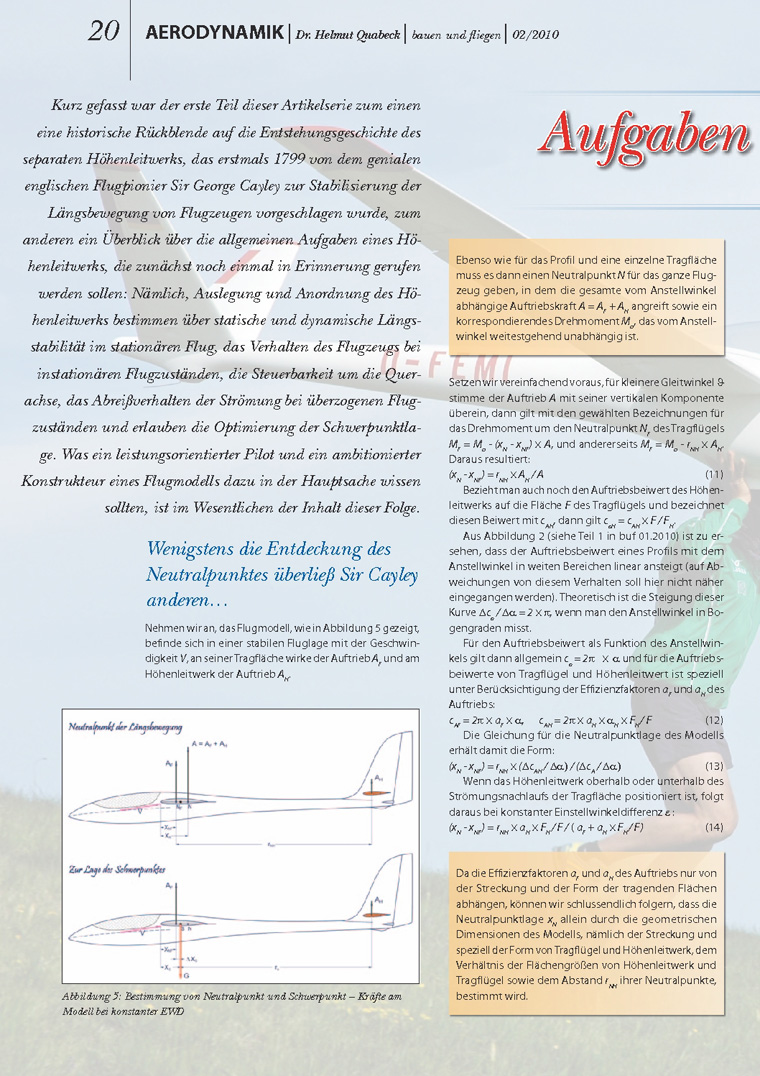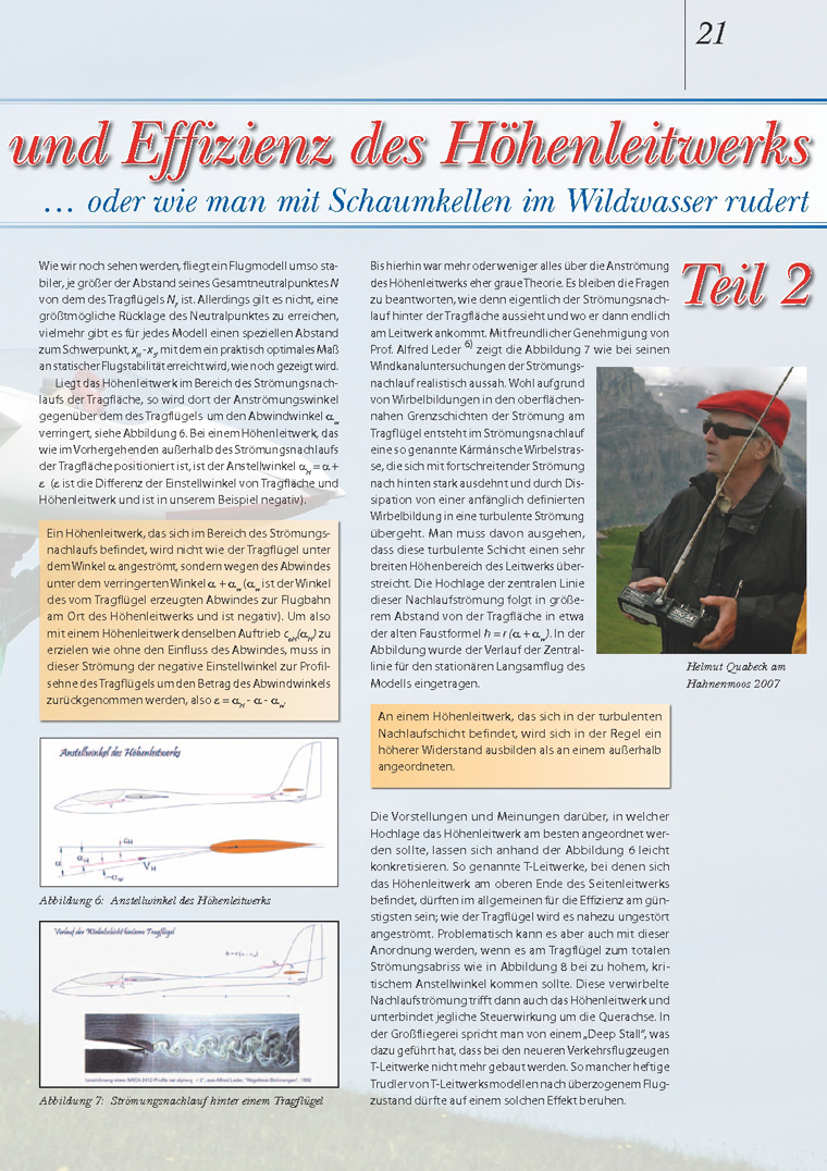 Eines der spannendsten und wichtigsten Kapitel von Aerodynamik und Flugmechanik ist das über die "Aufgaben und die Effizienz des Höhenleitwerks" . In einer Artikelserie über dieses Thema, die in fünf Folgen 2010 in der VTH-Zeitschrift